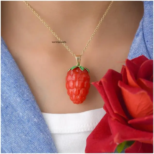 Elegant 925 silver gemstone strawberry pendant, handcrafted with precision. A unique designer charm, perfect for jewelry collections. Ideal for wholesale buyers seeking quality sterling silver jewelry.