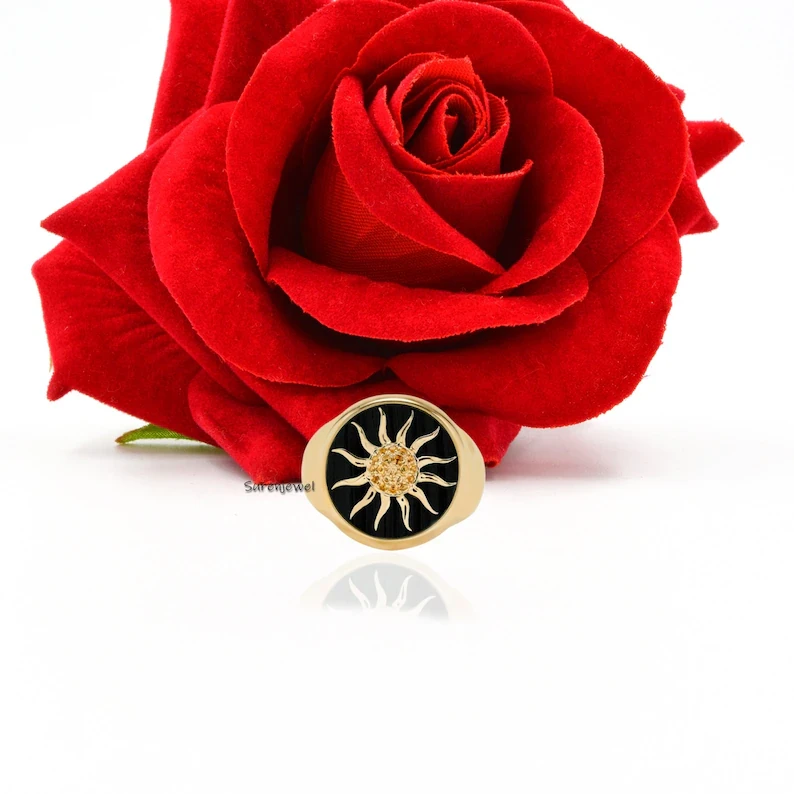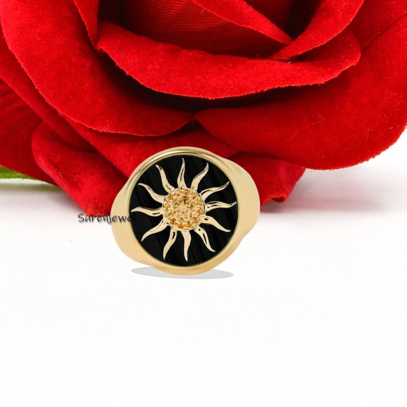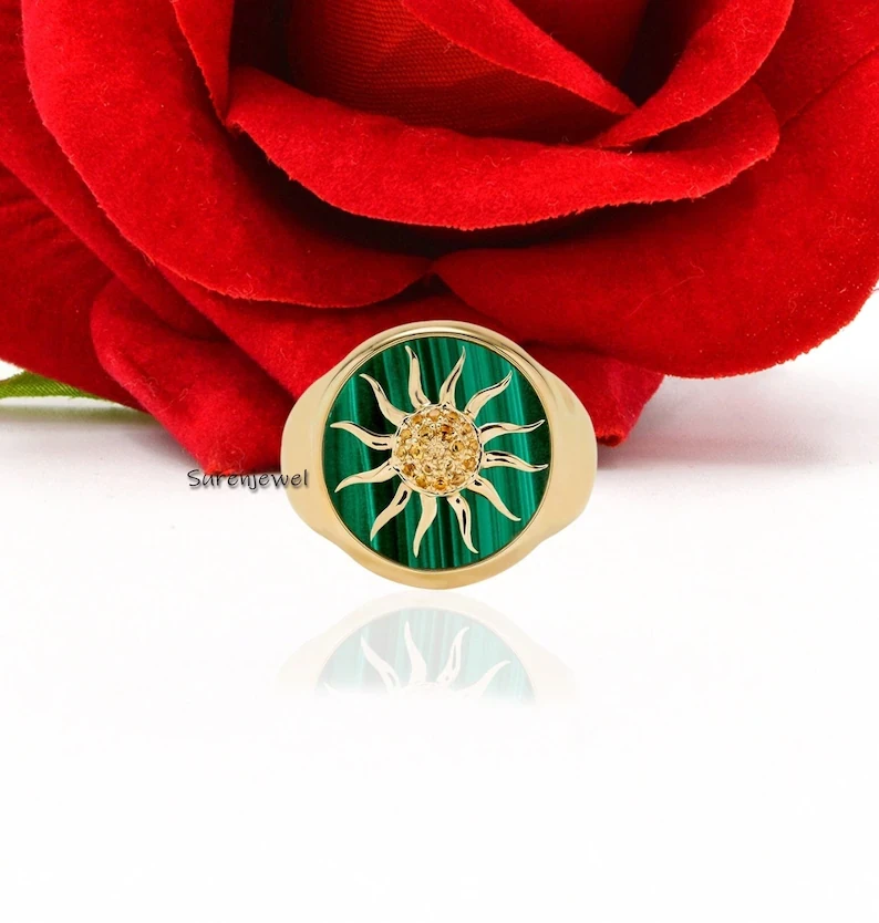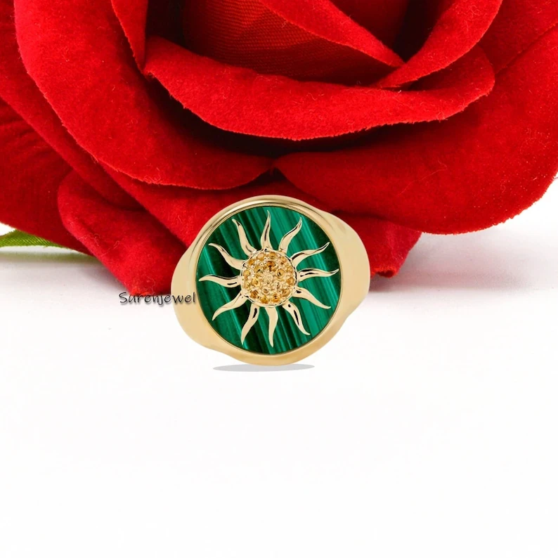 Radiate elegance with our 925 Silver Gemstone Sun Ring. Featuring a stunning malachite center, this dainty sunburst design adds charm. Wholesale from Suren Jewels.