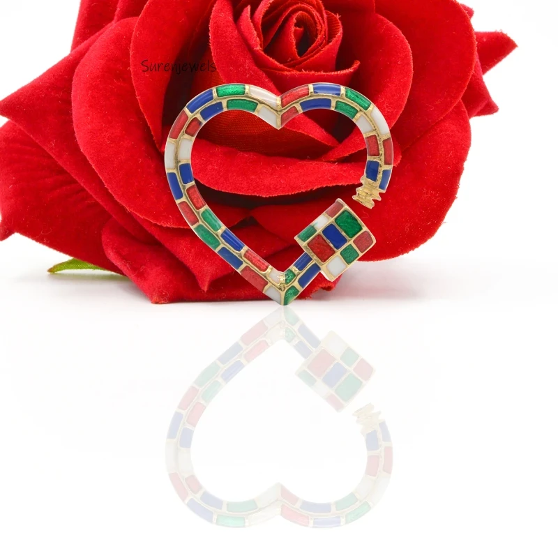 Add a pop of color with our Enamel Heart Carabiner Lock, crafted in 925 silver and gold. This multi-enamel carabiner lock is perfect for charm holders, necklaces, and bracelets, ensuring secure and stylish jewelry customization.