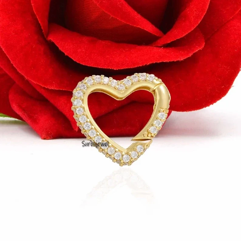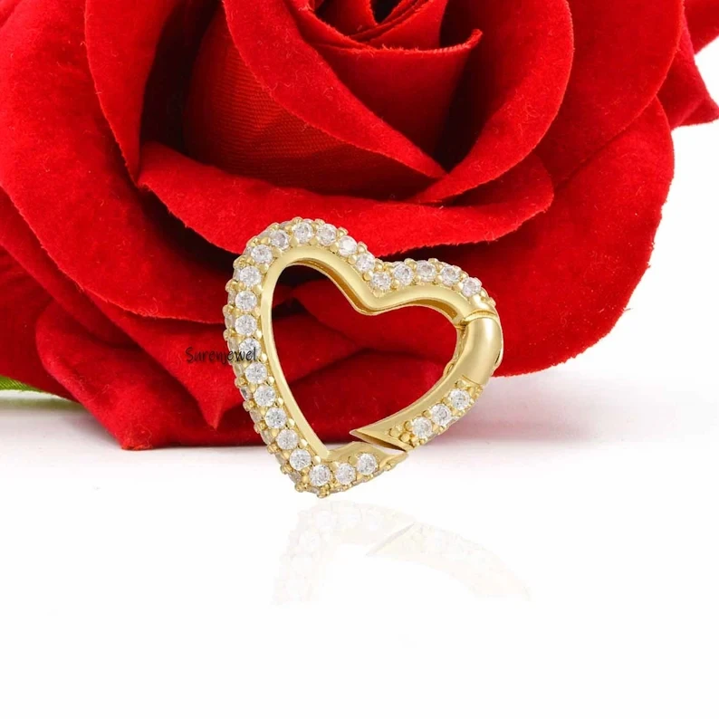 Elegant 925 silver heart charm holder with diamond accents. Secure push lock design, perfect for charm enhancement. Ideal for necklaces and bracelets. Wholesale pricing available at Suren Jewels.