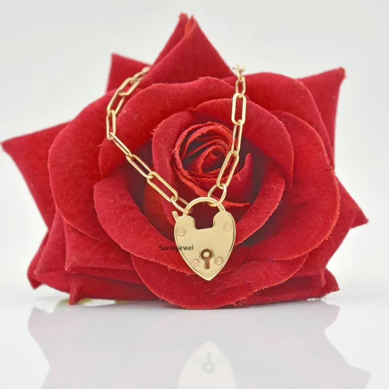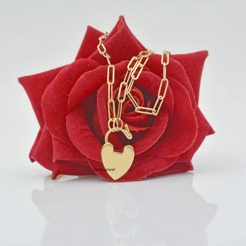 This 925 silver heart padlock necklace features a beautifully handcrafted padlock charm on a stylish paperclip chain. A timeless piece, perfect for enhancing charm holders, carabiners, and layered jewelry styles.