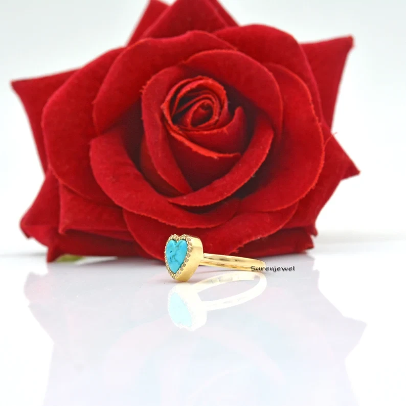 Elegant 925 silver heart ring with turquoise gemstone. Stylish and timeless, perfect for gifting. Wholesale pricing for retailers at Suren Jewels.