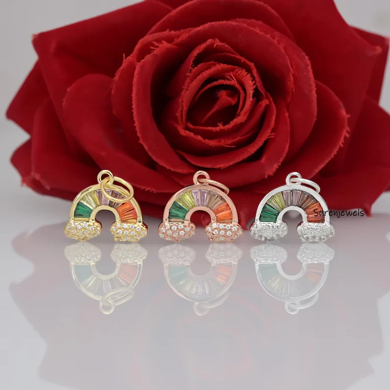 Crafted from 925 sterling silver, this elegant rainbow pendant adds a touch of charm to any necklace. Perfect for jewelry makers and wholesalers seeking quality silver charms.