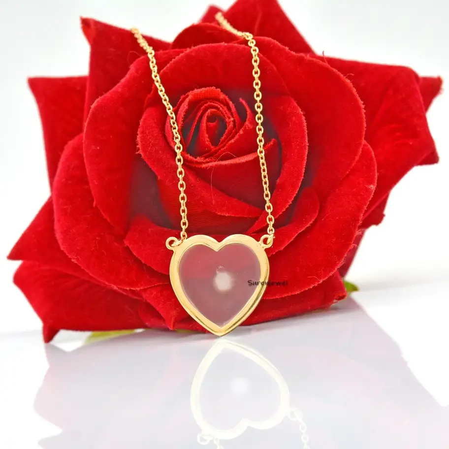 Elegant 925 silver necklace featuring a puffy heart pendant in rose quartz or opal. Perfect for charm holders or layering. A timeless piece for any jewelry collection. Wholesale available.