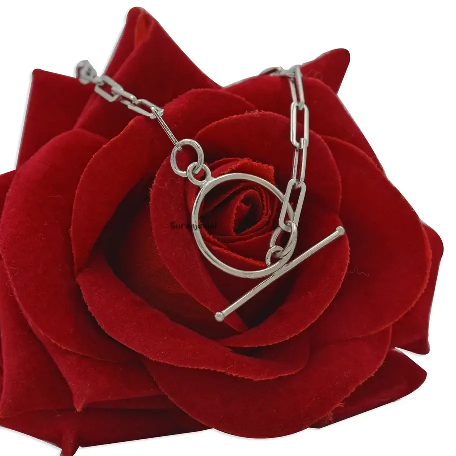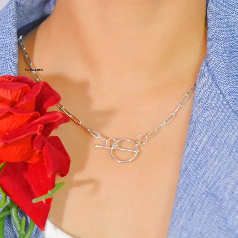 Suren Jewels’ 925 Silver Toggle Clasp Link Chain is a versatile carabiner toggle connector, perfect for charm holders and necklaces. Crafted with precision, this elegant paperclip-style small link chain adds a stylish touch to any jewelry collection.