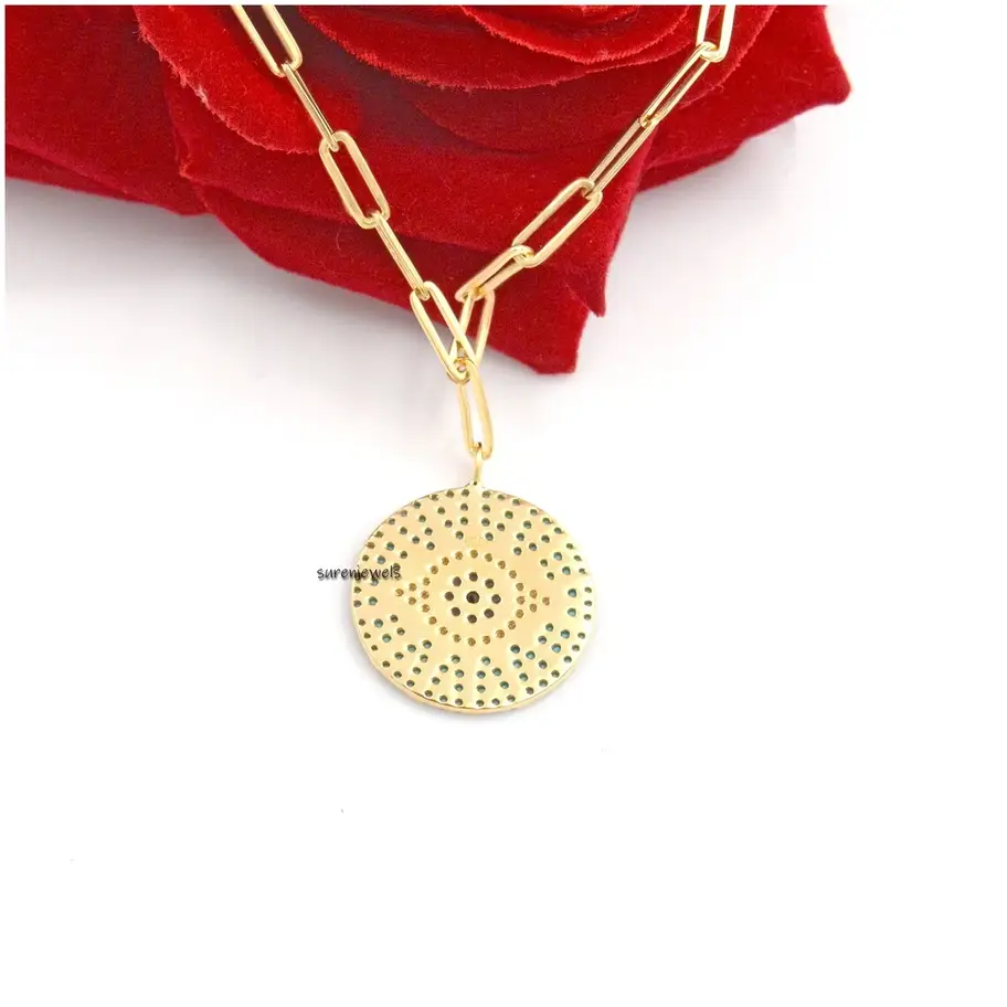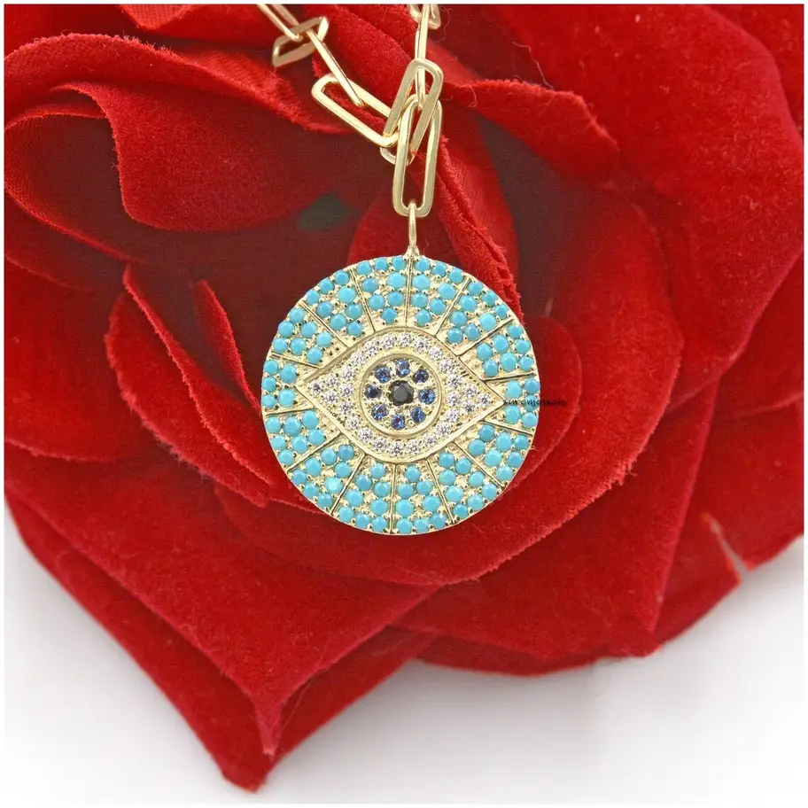 Crafted in 925 sterling silver, this exquisite Evil Eye necklace features sparkling diamonds and vibrant turquoise pave. A symbol of protection and elegance, it's a perfect charm holder addition for any jewelry collection. Wholesale only.