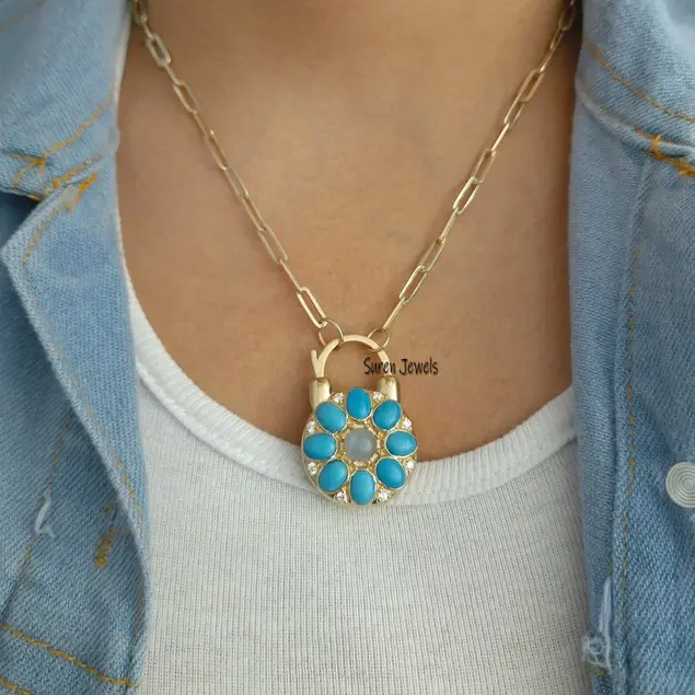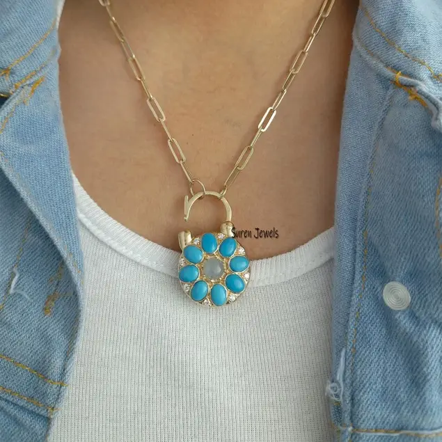 Enhance your jewelry collection with our 925 Silver Turquoise Padlock Pendant. Featuring a floral turquoise design, this openable connector padlock is perfect for charm holders, necklaces, and unique creations.