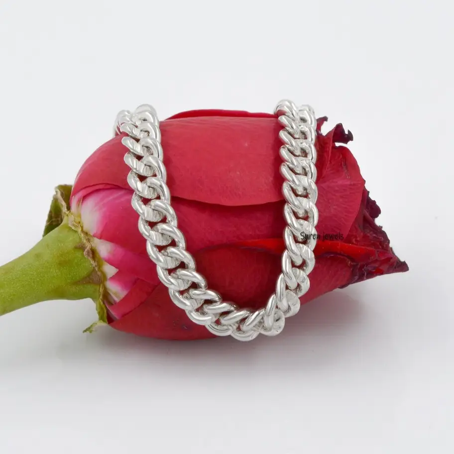 Elevate your collection with this 5mm 925 silver white gold curb chain bracelet. Perfect for layering or wearing solo, this sleek and durable design is ideal for wholesale buyers seeking premium quality jewelry.