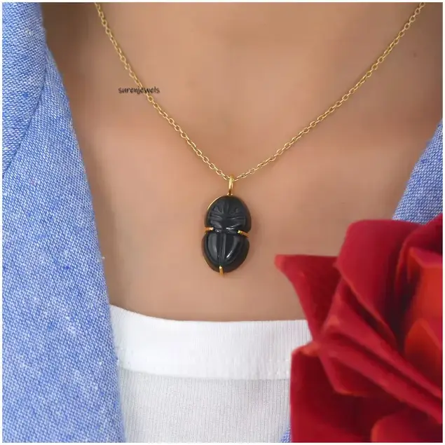 Exquisite 925 sterling silver hand-carved gemstone scarab pendant. A designer charm symbolizing protection and transformation, perfect for unique jewelry creations. Ideal for charm holders, necklaces, and custom jewelry designs.