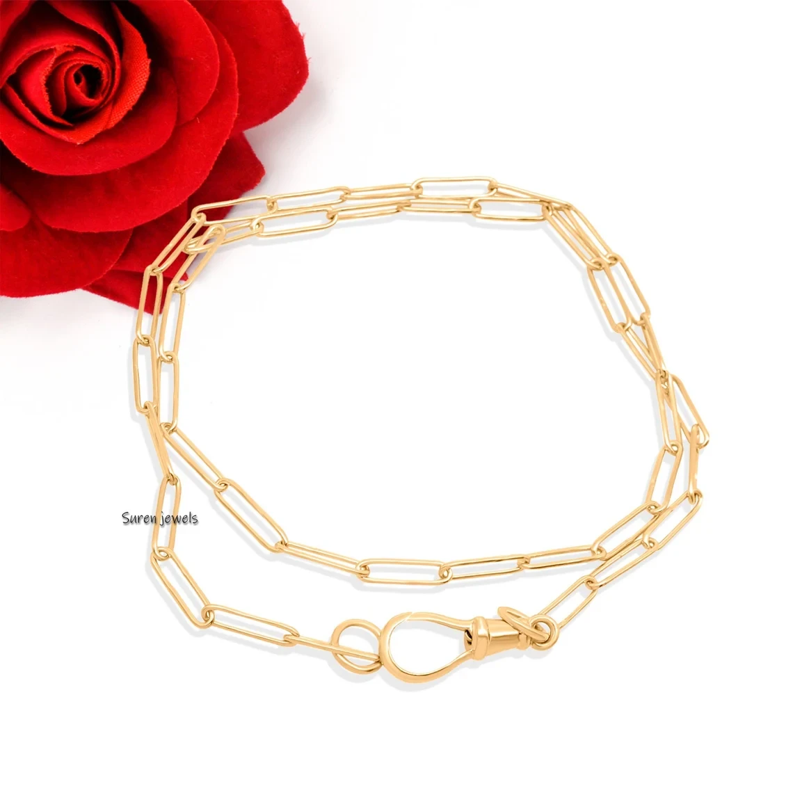 Upgrade your jewelry collection with our 925 sterling silver swivel lock chain necklace. Featuring a sleek paperclip chain and secure carabiner lock, this versatile piece is perfect for holding charms or wearing alone. Wholesale available at Suren Jewels.