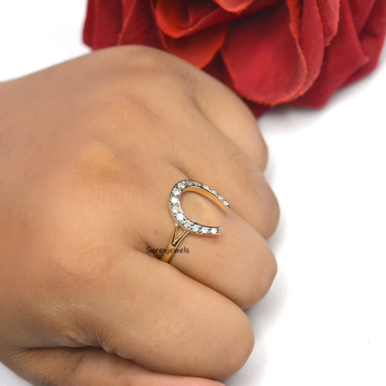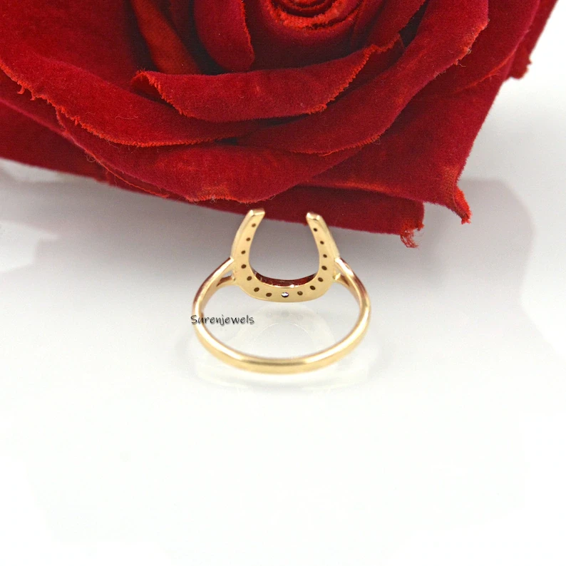 Bring luck and elegance to your collection with this 9K Gold Diamond Horseshoe Ring. Crafted with precision, this gold-plated horseshoe ring symbolizes good fortune, making it perfect for everyday wear. Available wholesale at Suren Jewels.