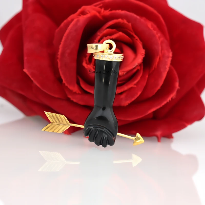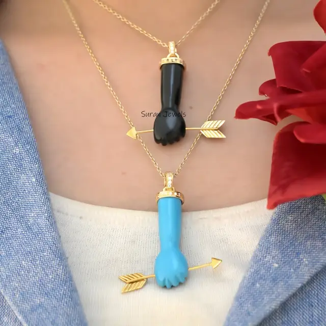 Elegant 14K solid gold Coral Figa pendant with turquoise gemstone. A timeless hand symbol charm, perfect for jewelry makers and collectors. Wholesale prices available at Suren Jewels.