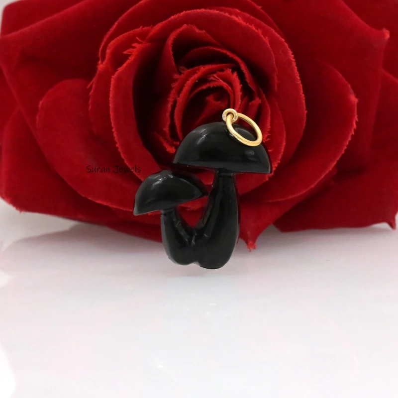 This exquisite Amazonite mushroom pendant is hand-carved and set in 14K gold, perfect for charm holders and necklaces. A unique crystal amulet, ideal for adding a mystical touch to any jewelry collection.