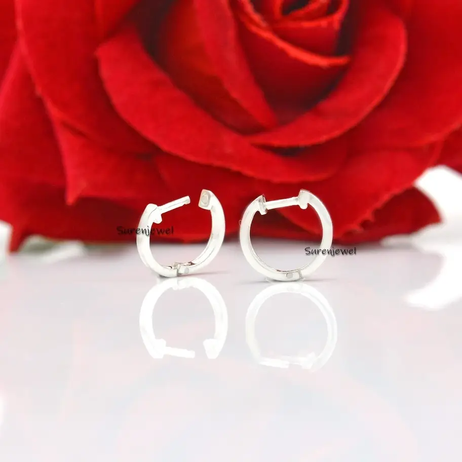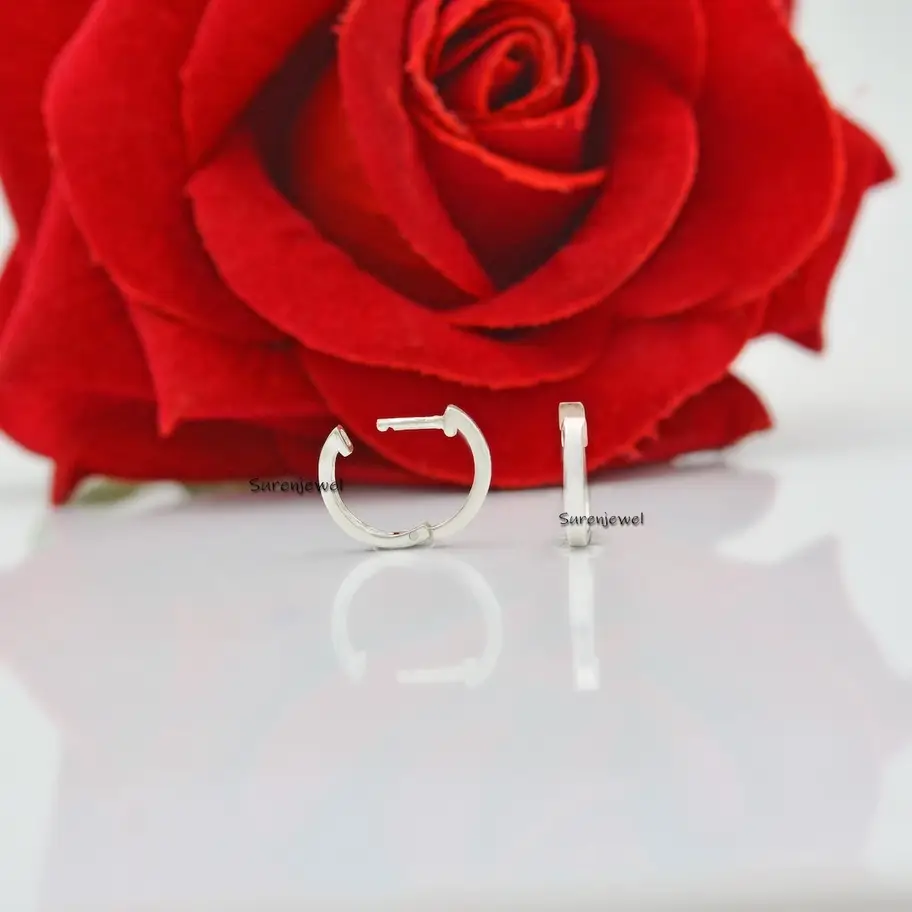 Suren Jewels presents these solid silver polished hoop earrings, designed for a sleek and timeless look. Featuring a straight lock for secure wear, these plain huggie hoops are perfect for everyday elegance.