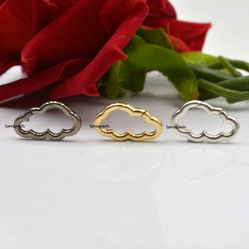 Elevate your jewelry with our Solid 14k Gold Cloud Enhancer. A secure charm holder with a stylish push-lock design, perfect for necklaces and bracelets. Wholesale pricing available at Suren Jewels.