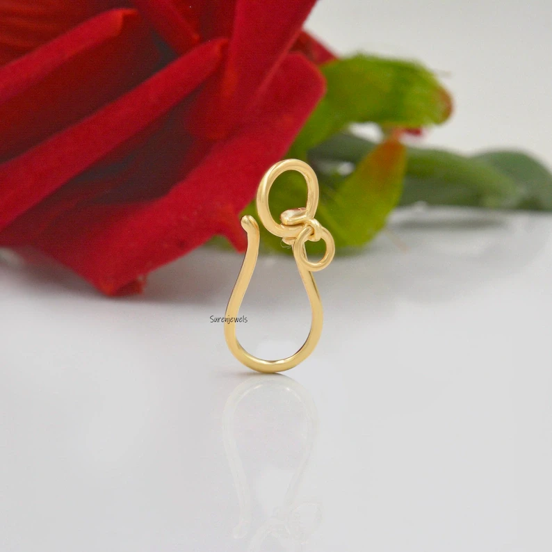 Crafted in solid 14K gold, this shepherd's hook anchor amplifier charm holder offers a secure push lock for versatile jewelry designs. Ideal for necklaces and charm bracelets, it ensures elegance and durability.