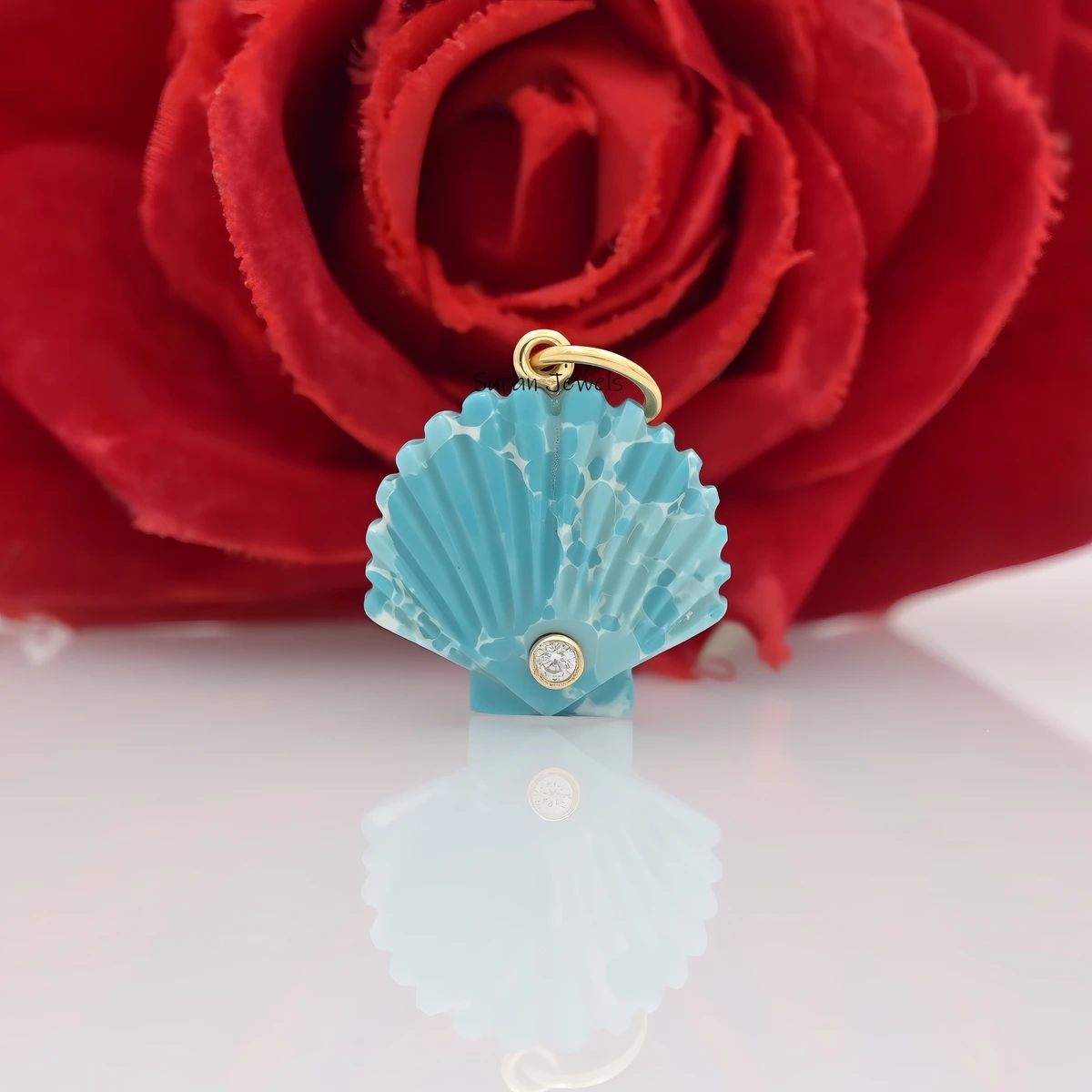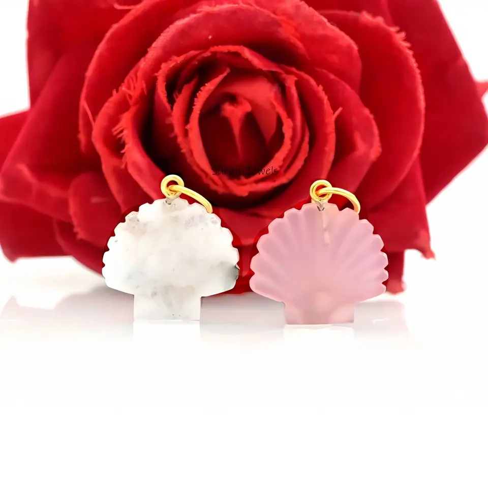 Elegantly crafted in 14K yellow gold, this scallop shell pendant features a natural white agate gemstone. A perfect charm for necklaces, this unique shell design adds a touch of ocean-inspired luxury to your collection.